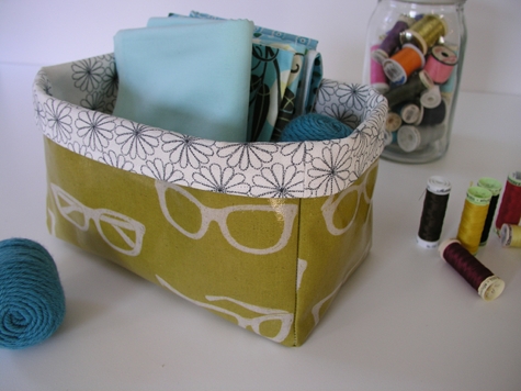 Sneak peek at the project from Sewing 101: Oilcloth storage bin on Design*Sponge: