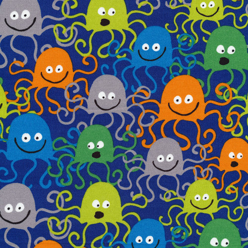 Happy Drawing Too, like its predecessor Happy Drawing, is based on the iconic how-to-draw books from Ed Emberley. The Octopus print is silly and fun in bright blues, greens, and oranges.