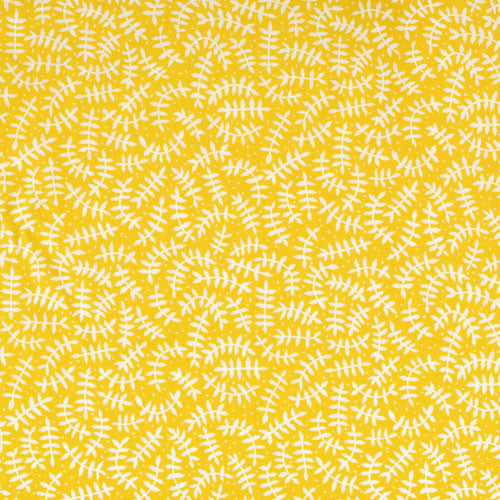 New from Steffie Brocoli, In the Forest tells a folkloric tale of an adventure in a fantastical forest. Branches is a bright and cheery yellow and white print with an all-over leafy branch print. Like looking up into the trees on a sunny day!