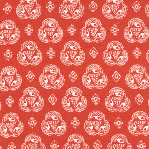 Tsuru means Crane in Japanese, where designer Rashida Coleman-Hale spent part of her youth. Tsuru soars with beauty and grace and a touch modern funkiness. Old Lace in Vermillion is a new take on a classic lace pattern, with graceful ivory cranes forming a beautiful, vintage repeating lace design on a brilliant vermillion red background.