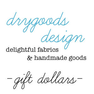 Give the gift of fabric and lovely goods! Sold in $5 increments, Drygoods Design gift dollars make any occasion sweeter. All gift certificates are e-cards, sent by email and treated as cash when redeemed. No expiration date but recipients will receive quarterly reminders to use their gift credits. Eligible for all products on the site, excluding gift certificates.